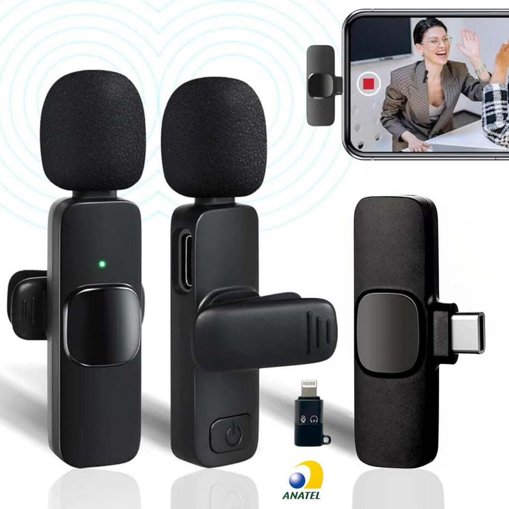 - ⚡ Conexão Plug & Play – Conecte o receptor Type-C ou (Adaptador para iPhone) ao seu celular, ligue os microfones e comece a gravar em segundos. Sem necessidade de Bluetooth, aplicativos ou configurações.